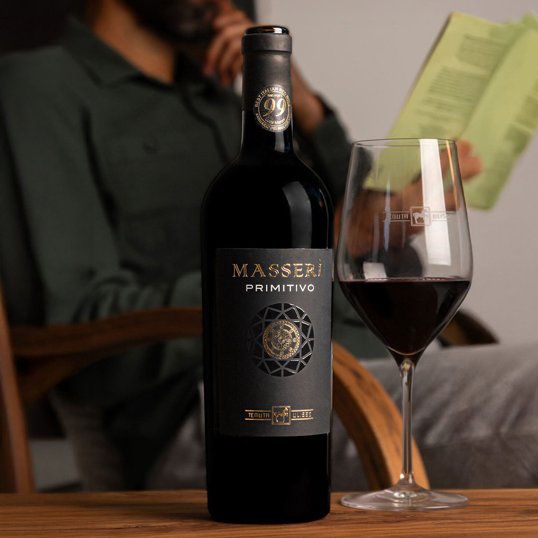 Plné a elegantní polosuché Primitivo s bohatou vůní lesního ovoce, ostružin a švestek, sametovými tříslovinami a dlouhým závěrem, ideální k pečeným masům, zvěřině a vyzrálým sýrům.